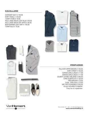 Profuomo | Cavallaro | Blue Industry | John Miller | Dstrezzed | Zuitable | Le dub | Cast Iron | Vanguard | Alberto | Benvenuto | Roy Robson | Milestone | Com4 | Desoto | Mio Minto | rehab | Carlo Lanza